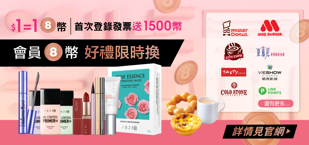 於購物官網或 Yahoo 商城 1028 旗艦店消費者,享免登錄發票服務,只要註冊成為會員,8幣就能自動入帳。1028 保留最終修改及解釋權利。